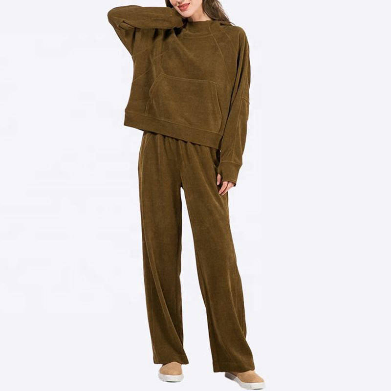 ชุดนอนลำลองสำหรับผู้หญิง ชุดนอนผ้ากำมะหยี่คอร์ดูรอย ชุดนอนมีฮู้ด เสื้อคลุม กางเกงลำลอง ผ้าไหม 100%