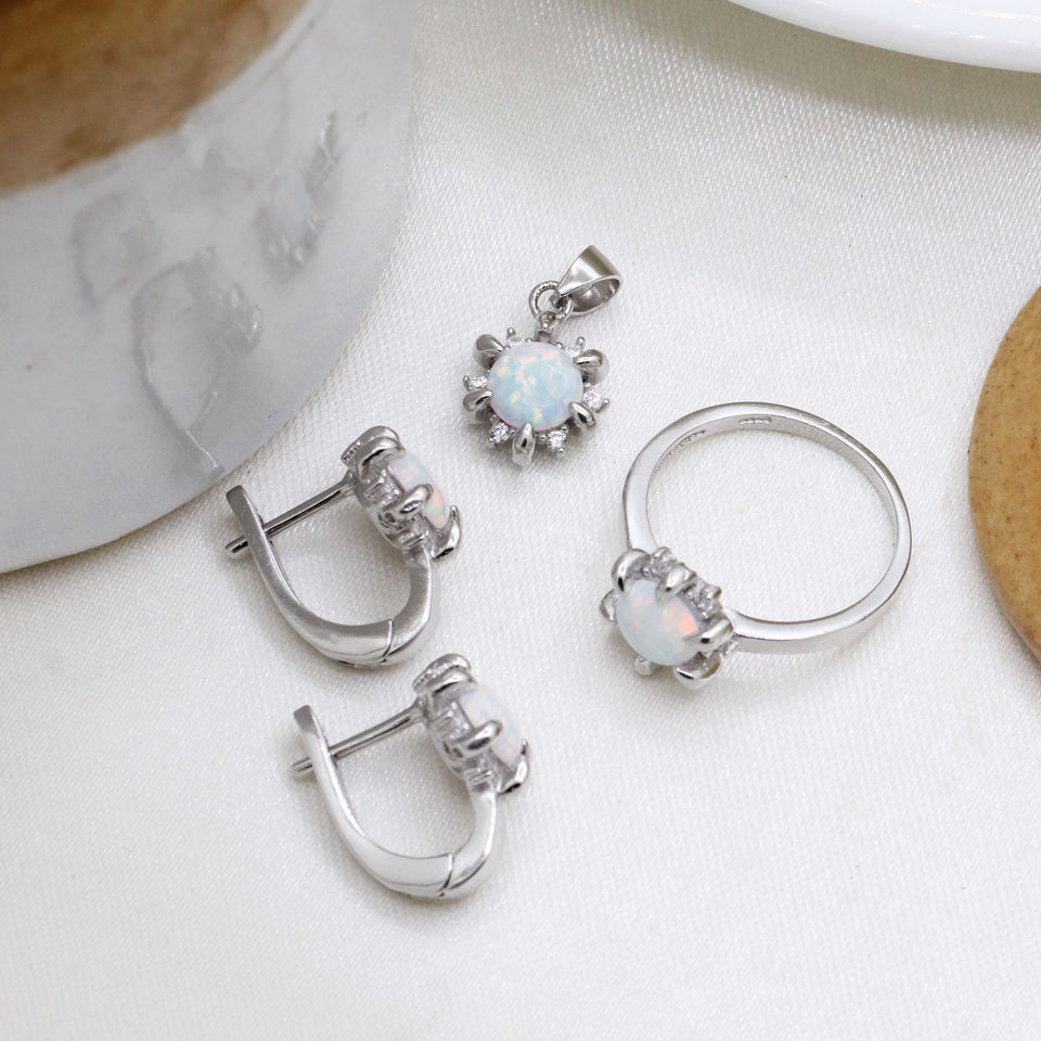 ชื่อรายการ:ชุดเครื่องประดับเงินพร้อมอัญมณีธรรมชาติโอปอลและเพทายลูกบาศก์