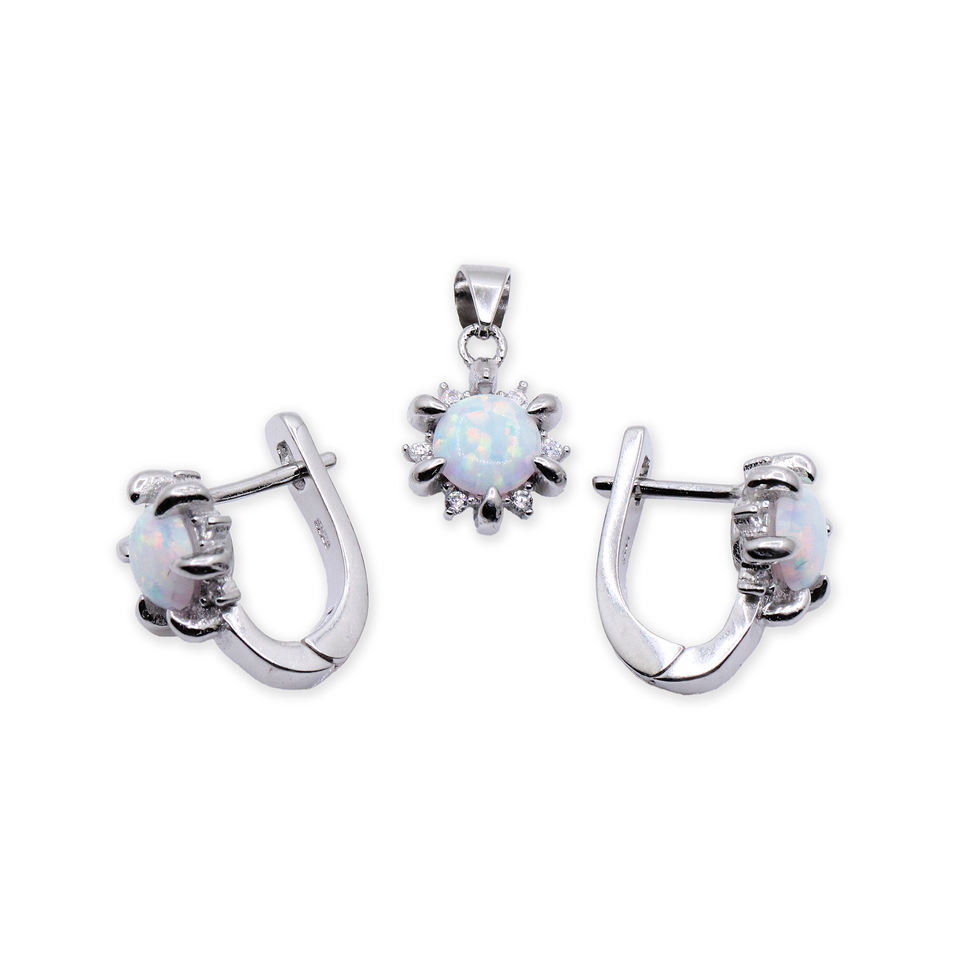 ชุดเครื่องประดับเงินพร้อมอัญมณีธรรมชาติโอปอลและเพทายลูกบาศก์