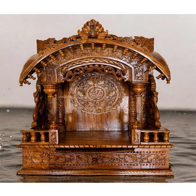 Buy Hand Carved SwamiNarayan Mandir for Home Small Size Teak Wooden Temple buy Solid Wood Hand Carved Brown Fininsh Puja Unit UK