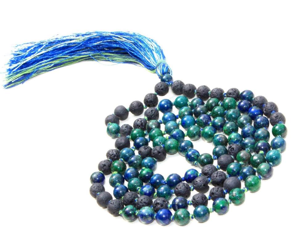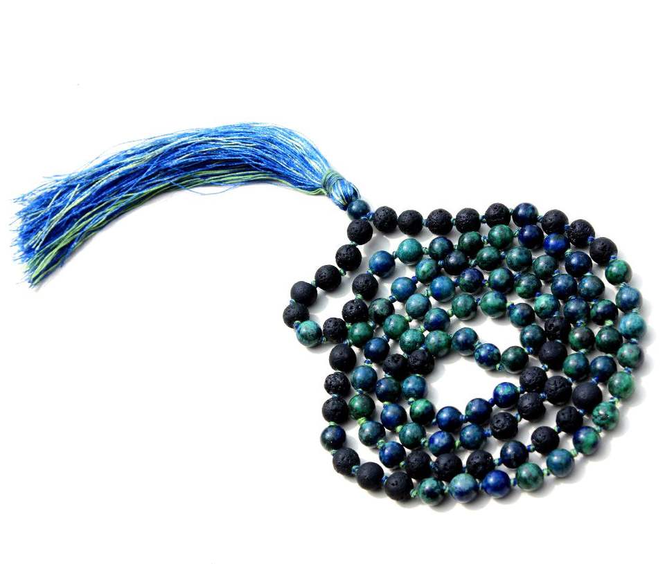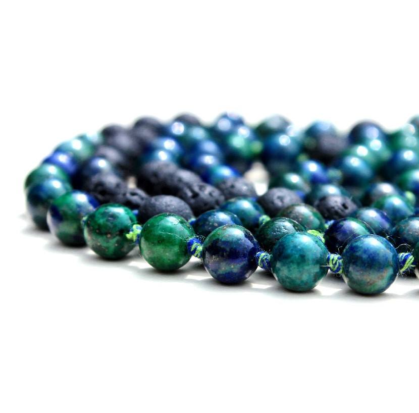 108ทำด้วยมือลูกปัดสวดมนต์โบฮีเมียนมาเลียคริสโซโคลลาอาซูไรต์ศิลปินโยคะอินเดียของขวัญสำหรับปาร์ตี้