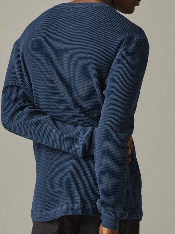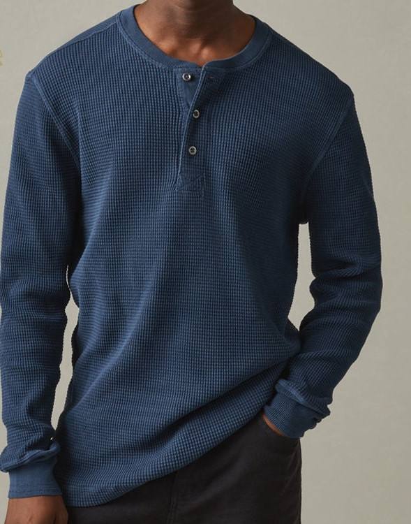 เสื้อยืดแขนยาวทรงโอเวอร์ไซส์ผ้าวาฟเฟิลเนื้อหนาสำหรับผู้ชาย ผลิตจากผ้าฝ้าย 100% ให้ความอบอุ่น เป็นมิตรกับสิ่งแวดล้อม ยั่งยืน พร้อมลายพิมพ์