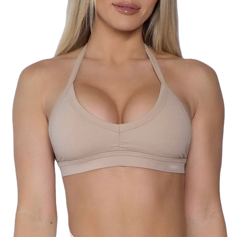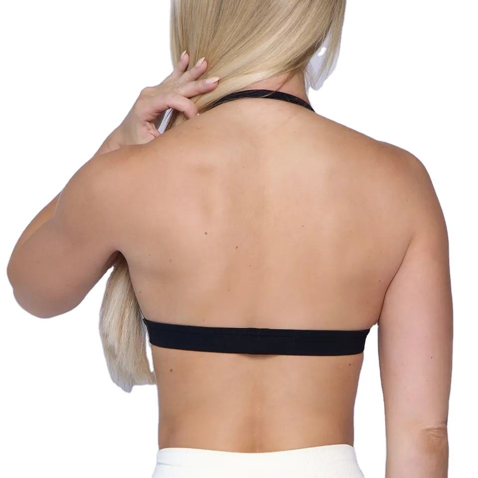 ซื้อชุดเล่นโยคะสำหรับผู้หญิงเสื้อคล้องคอโชว์แผ่นหลังเปิดหลังมีสาย2025ผ้าสแปนเด็กซ์