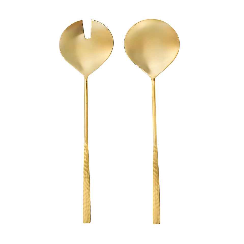 ชุดช้อนเสิร์ฟสลัดสแตนเลสชุบทองทำมือจากอินเดีย ดีไซน์ใหม่ ปลอดภัยสำหรับเครื่องล้างจาน เหมาะสำหรับครัวและโรงแรม