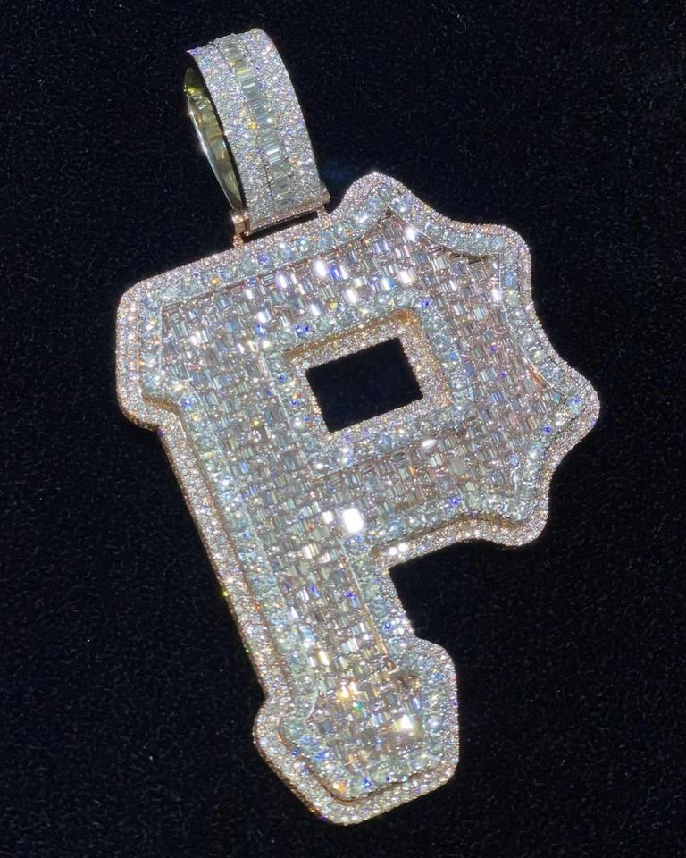 ซื้อจี้ตัวอักษร P แบบกำหนดเองได้, จี้มอสซาไนต์ทรงบาแกตต์แบบฮิปฮอปพร้อมชื่อสั่งทำ, จี้แบบ Iced Out, จี้สำหรับแร็ปเปอร์