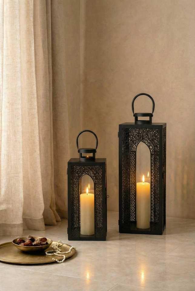 ซื้อโคมไฟแก้วลายนูนแบบอาหรับ โคมไฟโมร็อกโก ที่ใส่เทียนโลหะสำหรับรอมฎอน ตกแต่งบ้าน