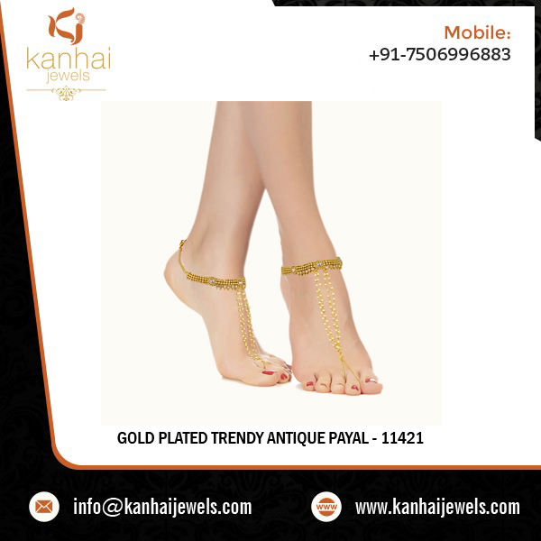 Buy Latest Wholesale Price for Antique Gold Plated Classic Payal with Export Quality for Womens 11421