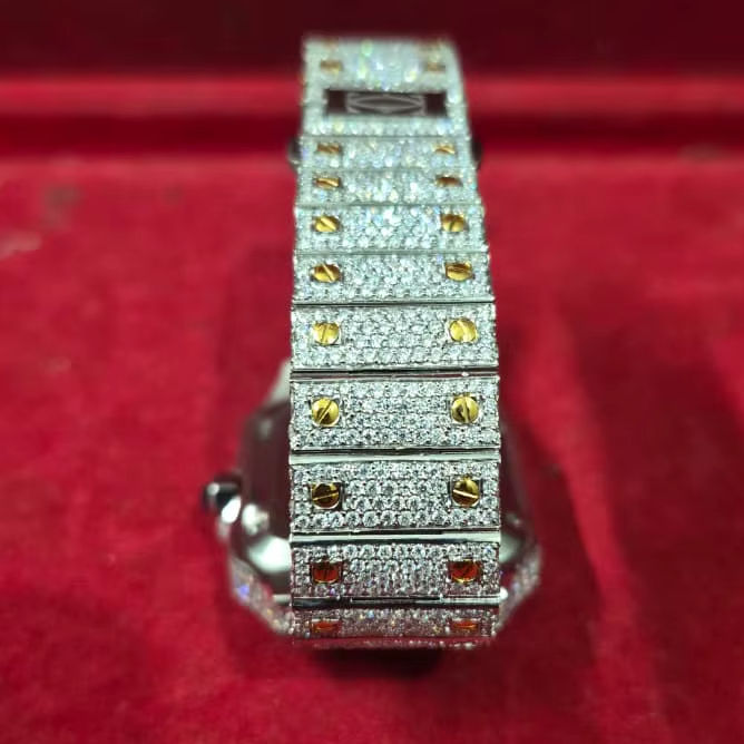 ซื้อนาฬิกาโครโนกราฟผู้ชายประดับเพชรโมอิสซาไนต์ สายยางสีเขียว สไตล์ฮิปฮอป