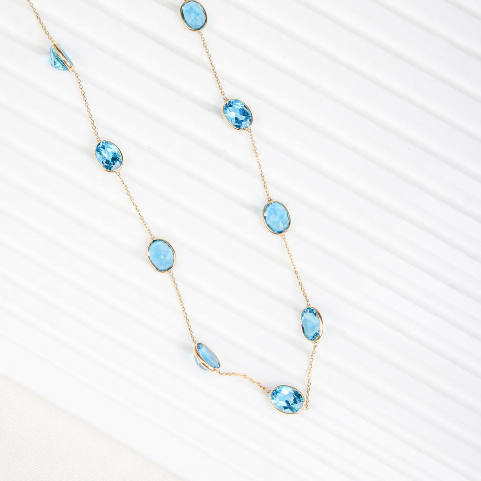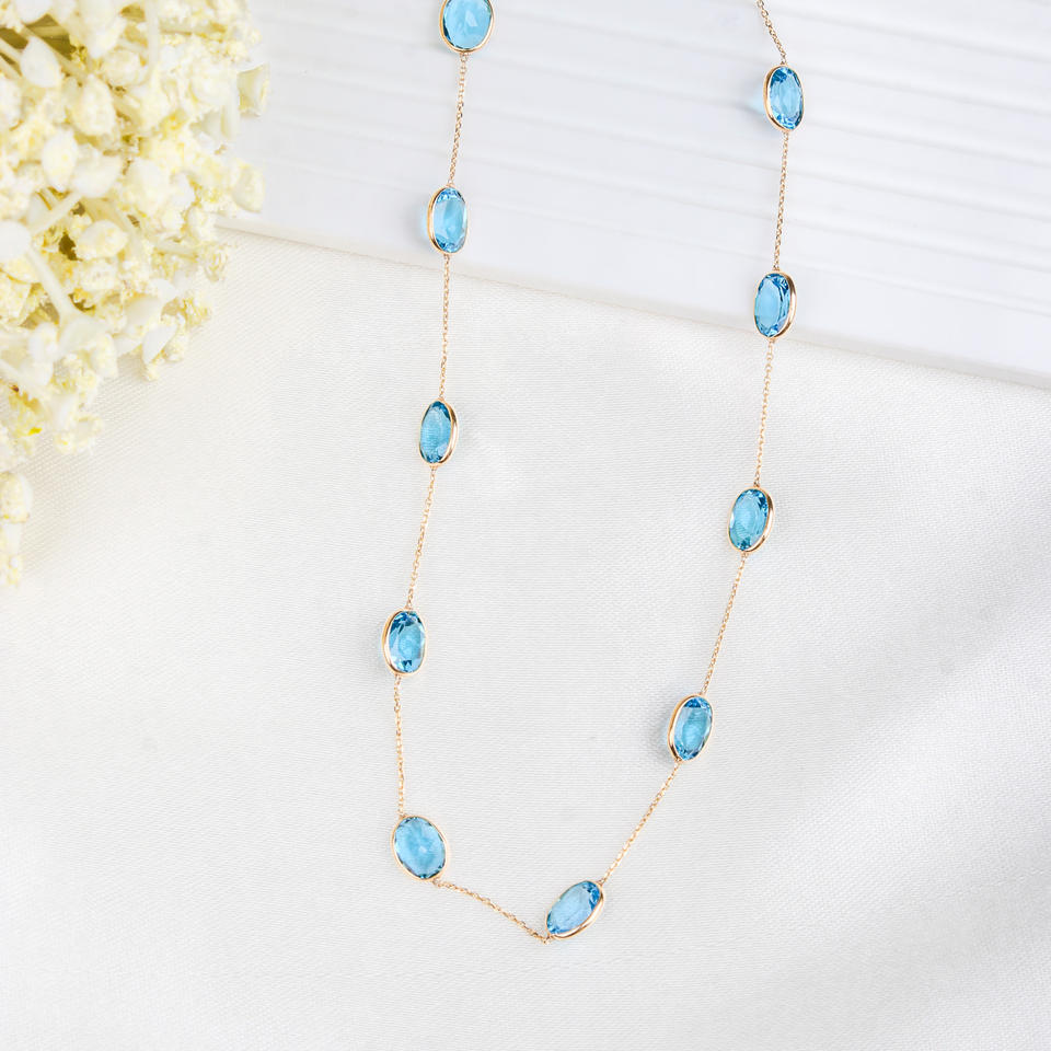 สร้อยคอทองบุษราคัมสีฟ้าธรรมชาติ