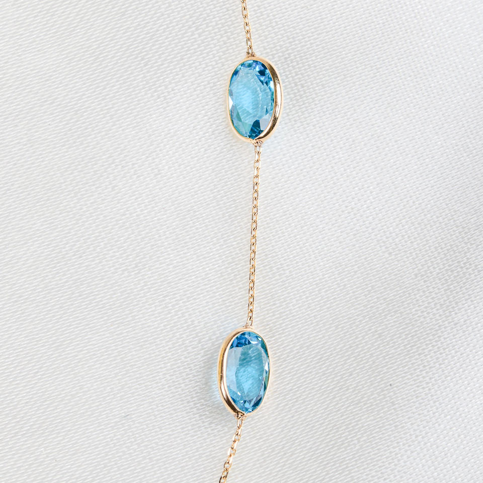 ซื้อสร้อยคอพลอยโทแพซสีฟ้าธรรมชาติทำด้วยมือทองเหลือง18K สำหรับผู้หญิงขายส่ง