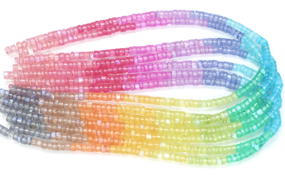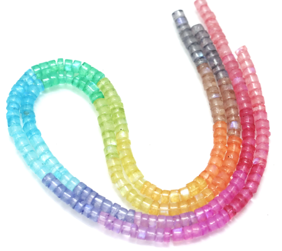 ชื่อผลิตภัณฑ์:ลูกปัด Heishi ลายรุ้งธรรมชาติประกายยางรูปทรงเรียบสีรุ้ง