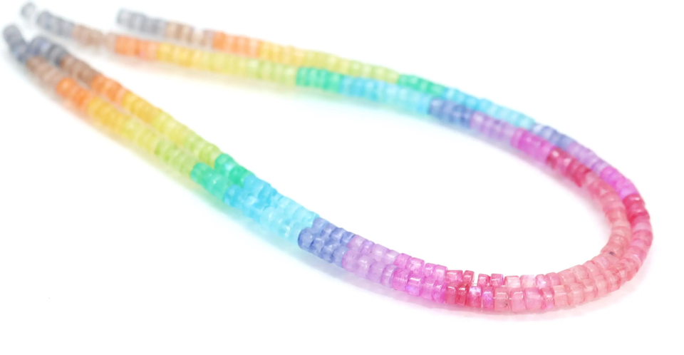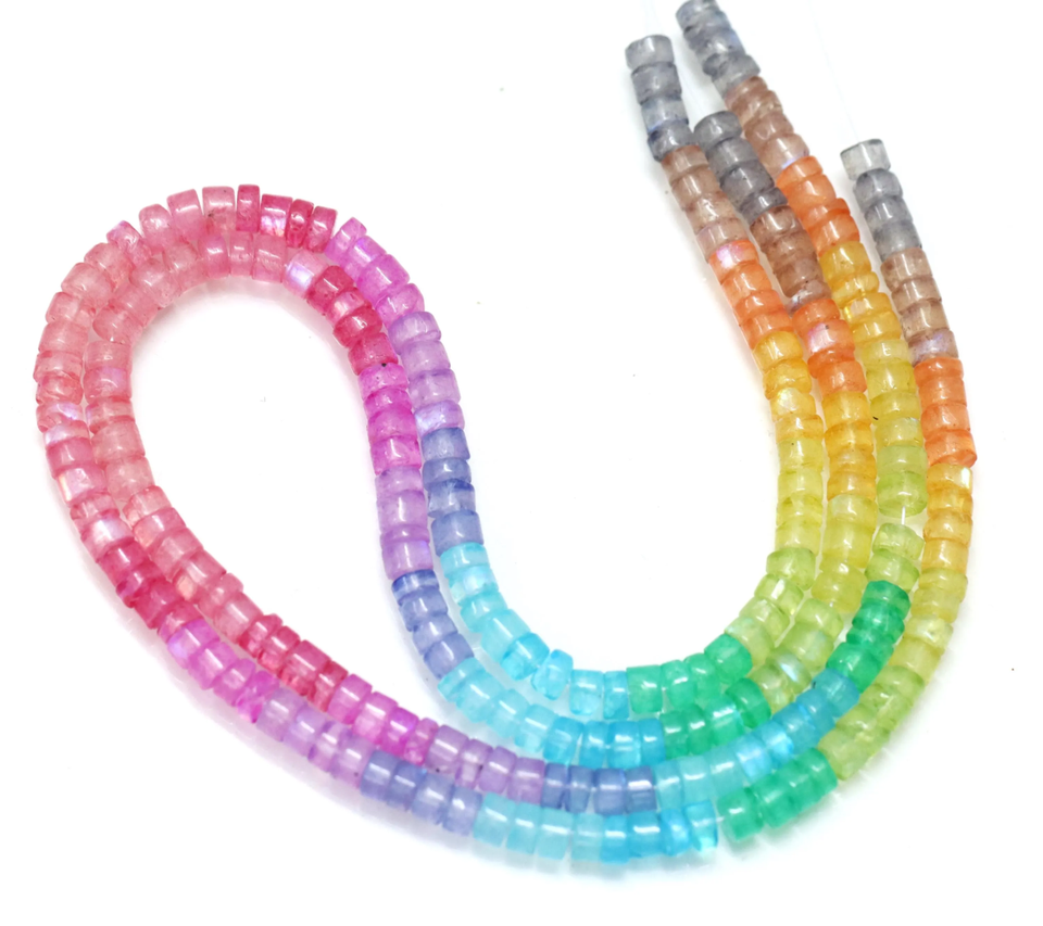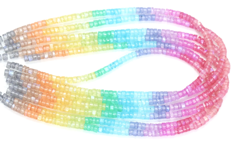 Products Name:Natural Flashy Rainbow Moonstone Smooth Tyre shape Heishi