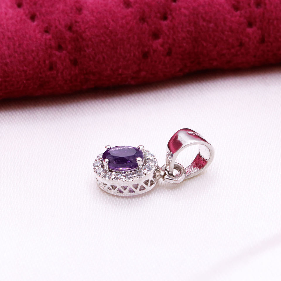 ชื่อรายการ:จี้พลอยอเมทิสต์สีม่วงธรรมชาติและเพชรทรงรัศมีสีเงิน925
