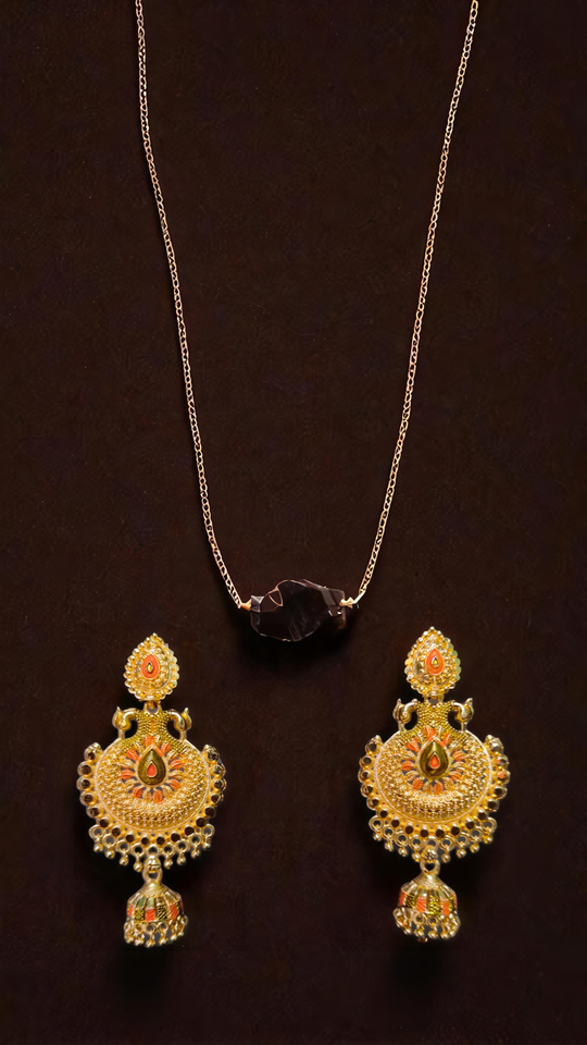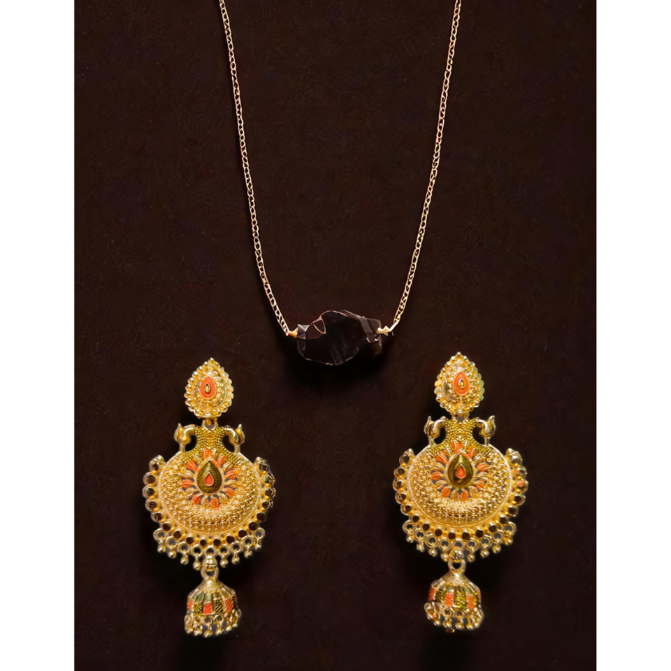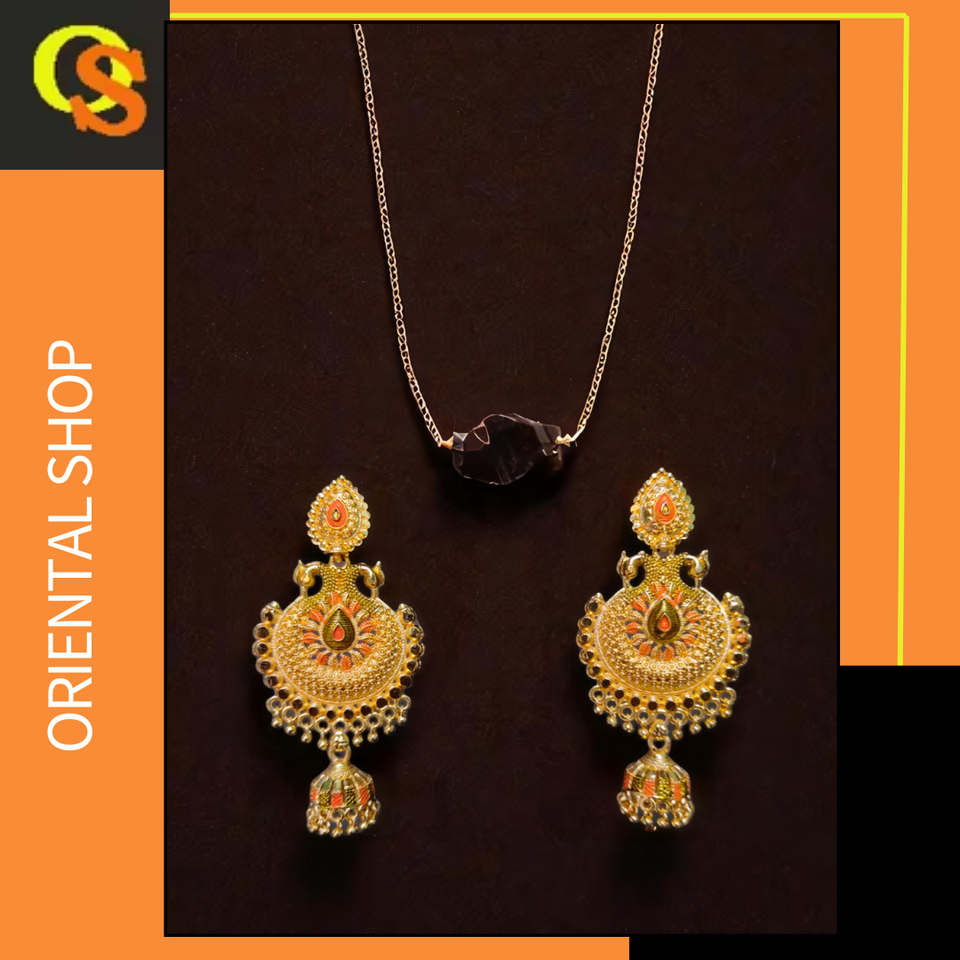 ซื้อชุดต่างหูสร้อยคอหินธรรมชาติพร้อมชุดต่างหูสร้อยคอชุบทอง22K แบบดั้งเดิม