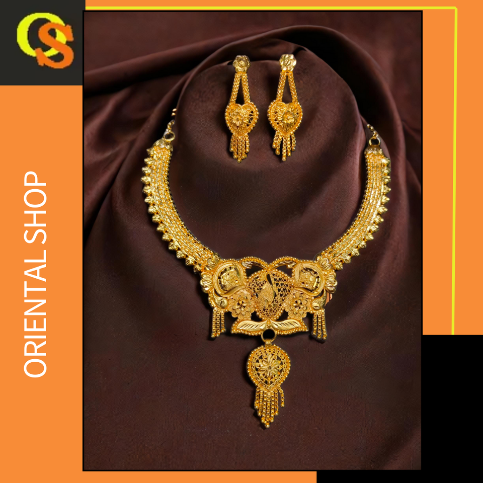 ชุดเครื่องประดับสร้อยคอต่างหูชุบทอง22K สำหรับผู้หญิงชุดเครื่องประดับสร้อยคอต่างหู