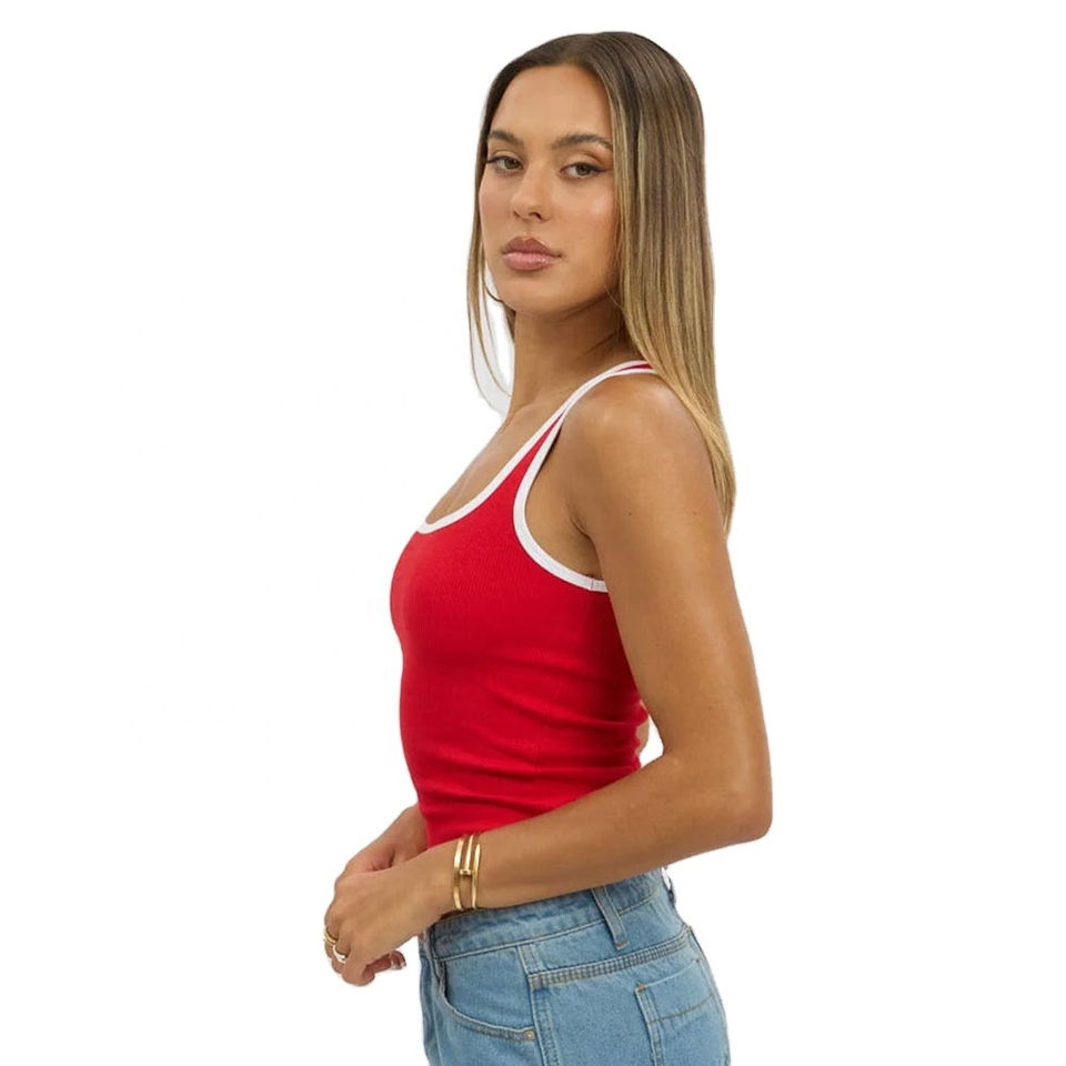 ซื้อเลย! เสื้อกล้ามครอปผ้าฝ้ายสั่งทำพิเศษสำหรับผู้หญิง แขนกุด สีแดง สไตล์ลำลอง ใส่สบายสำหรับฤดูร้อน เสื้อกล้ามผู้หญิง ราคาถูก รับผลิตแบบ OEM