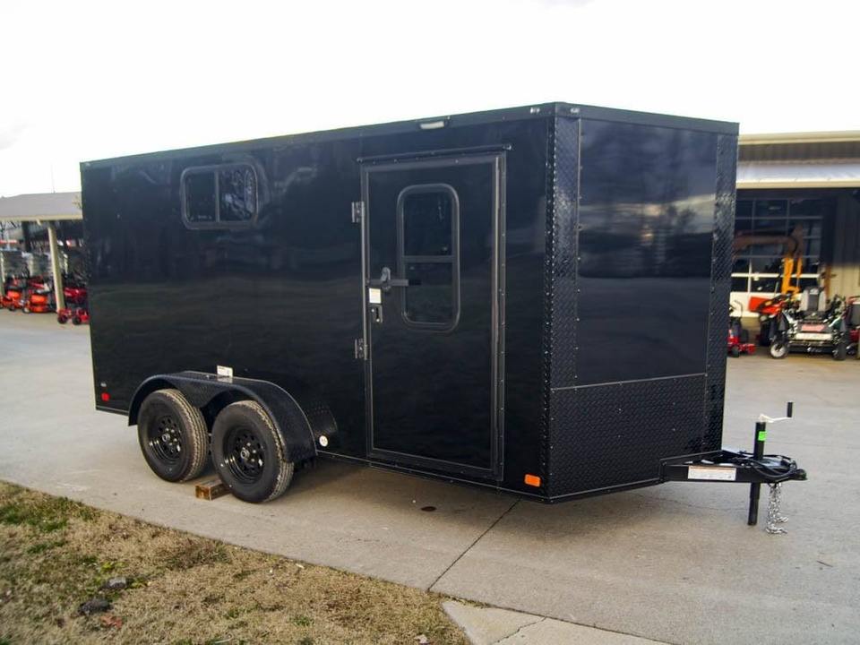 ซื้อเลย ราคาดี รถพ่วงปิดทึบแบบ V-Nose สีดำ ขนาด 7x14 ฟุต พร้อมชุดอุปกรณ์ Blackout (2) เพลา 3,500 ปอนด์ ชุดอุปกรณ์ไฟฟ้า