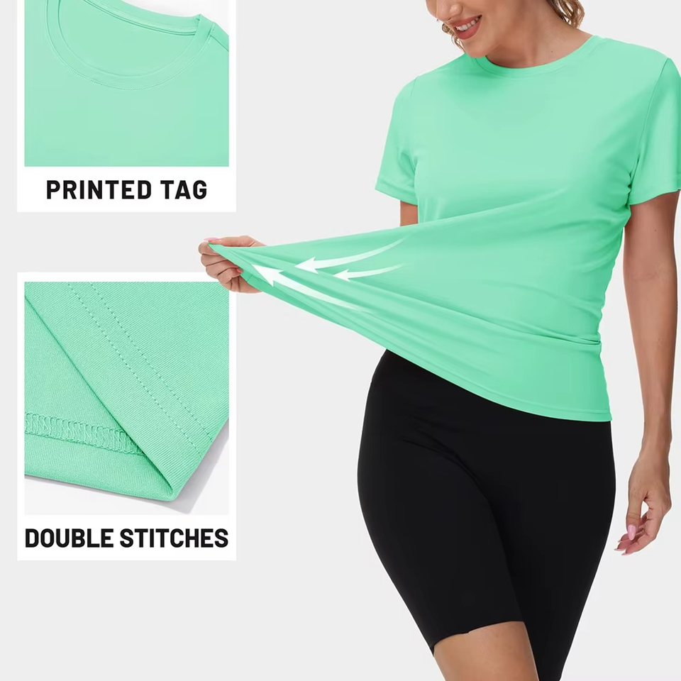 ซื้อเลย เสื้อยืดออกกำลังกายสำหรับผู้หญิง เนื้อผ้ายืดหยุ่น น้ำหนักเบา ซับเหงื่อได้ดี เหมาะสำหรับใส่ในยิม รับผลิตแบบ OEM ODM
