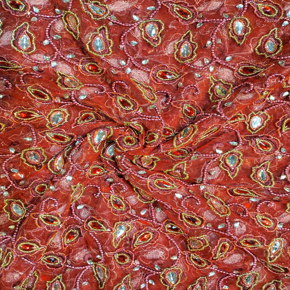 ซื้อผ้าลูกไม้ปักเลื่อมสีแดงหรูหราแบบตาข่าย 5 หลา สำหรับชุดแต่งงาน ผ้าลูกไม้ปักหนักสำหรับชุดผู้หญิง ลดราคาออนไลน์