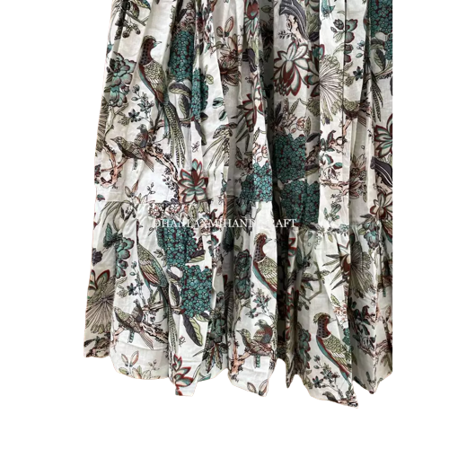 กระโปรงยาวสไตล์โบฮีเมียนสำหรับผู้หญิงกระโปรงผ้าฝ้ายสองชั้นพิมพ์ลายนกยูงเอวธรรมชาติระบายอากาศได้คุณภาพระดับพรีเมี่ยม