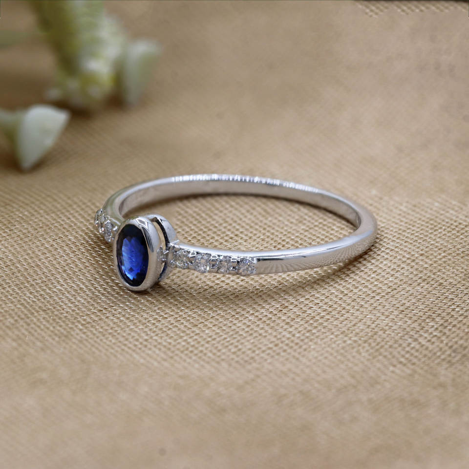 ชื่อรายการ:แหวนไพลินสีน้ำเงินประดับเพชรแท้สำหรับผู้หญิง