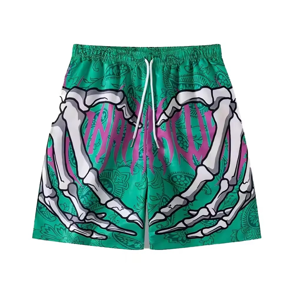 กางเกงขาสั้นตาข่ายแบบผูกเชือกสำหรับผู้ชายกางเกงขาสั้นตาข่ายแบบลำลองพิมพ์ลายได้อย่างยั่งยืนระบายอากาศได้ดี