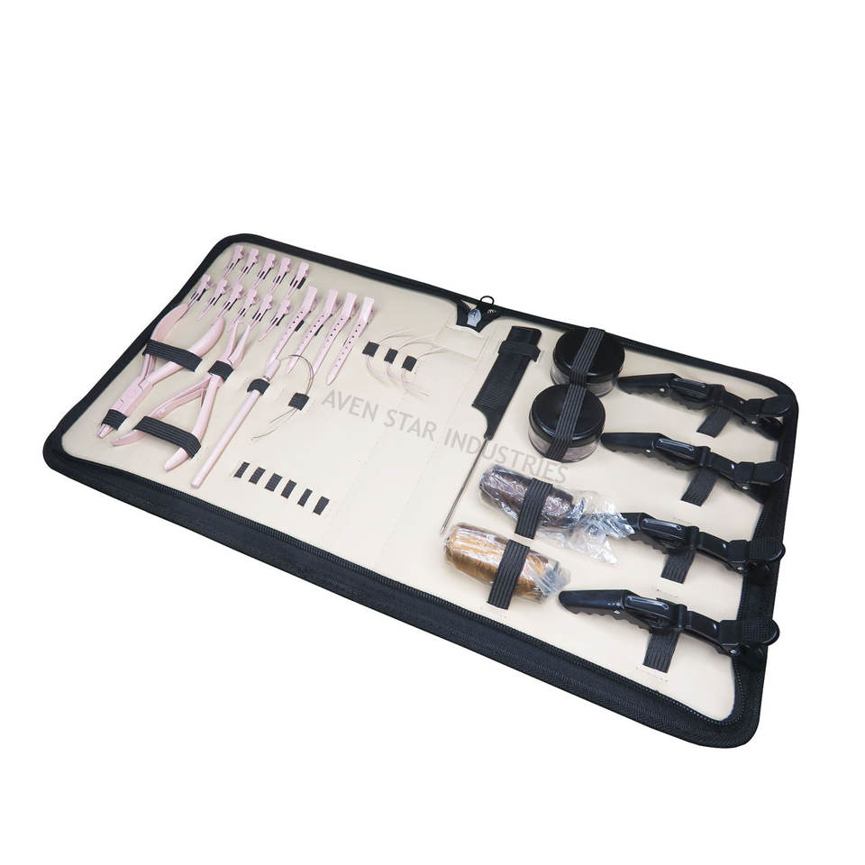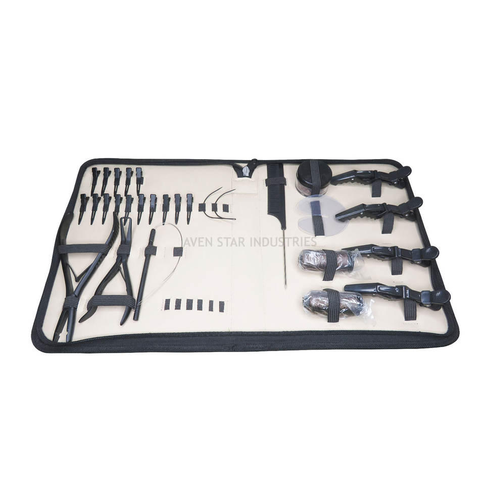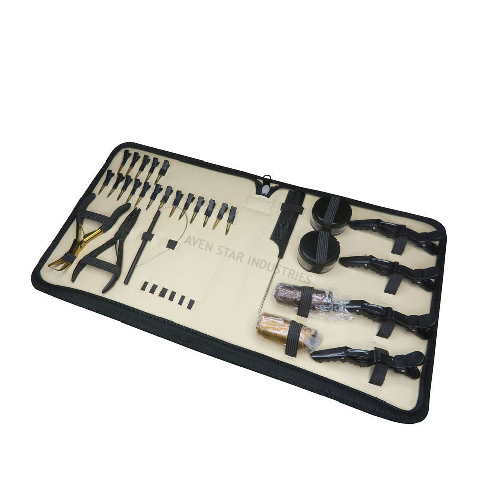 ห่วงร้อยด้ายขนาดเล็กสำหรับร้านเสริมสวยพร้อมกล่องหนังอุปกรณ์เสริมเครื่องมือสำหรับต่อผมแบบเข็ม C 2เส้น