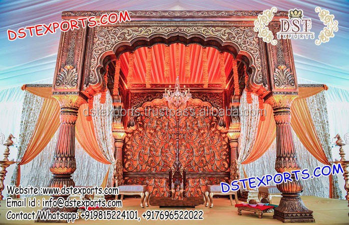 ซื้อแบบดั้งเดิม srilankan mandap ไฟเบอร์ชุด mandap แกะสลักแต่งงานแต่งงานแต่งงาน Grand mandap Setup srilankan แบบพกพาเวทีงานแต่งงานสหราชอาณาจักร