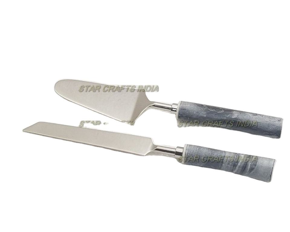 ซื้อมีดเค้กสแตนเลสสำหรับงานแต่งงานชุดเค้กสีดำเซิร์ฟเค้กพลั่วสามเหลี่ยมและเซิร์ฟเวอร์จาก SCI