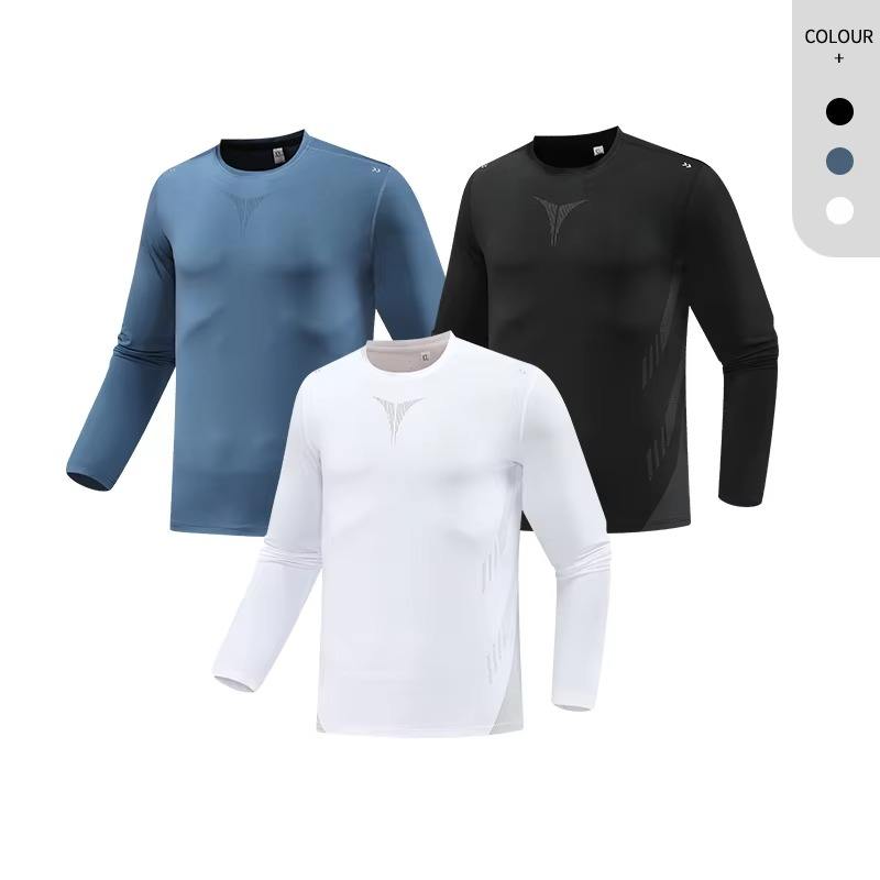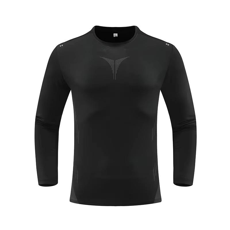 เสื้อยืดออกกำลังกายแขนยาวสำหรับผู้ชายทรงเข้ารูปผ้าโพลีเอสเตอร์สแปนเด็กซ์