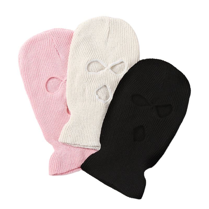 หมวกไหมพรมถักแบบมีรูสำหรับ2025หมวกบีนนี่หมวกหน้ากากถัก3รูดีไซน์ตามสั่ง