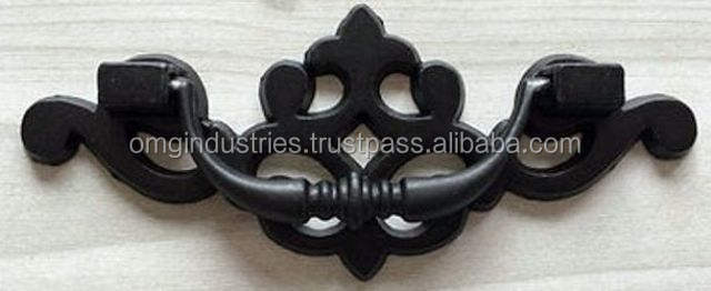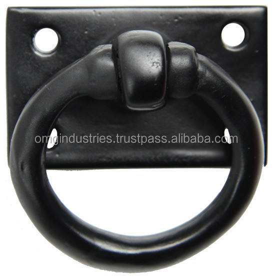ซื้อขายส่งมือจับลิ้นชักเหล็กหล่อแบบวงแหวน มือจับตู้ครัวแบบโบราณสีดำ