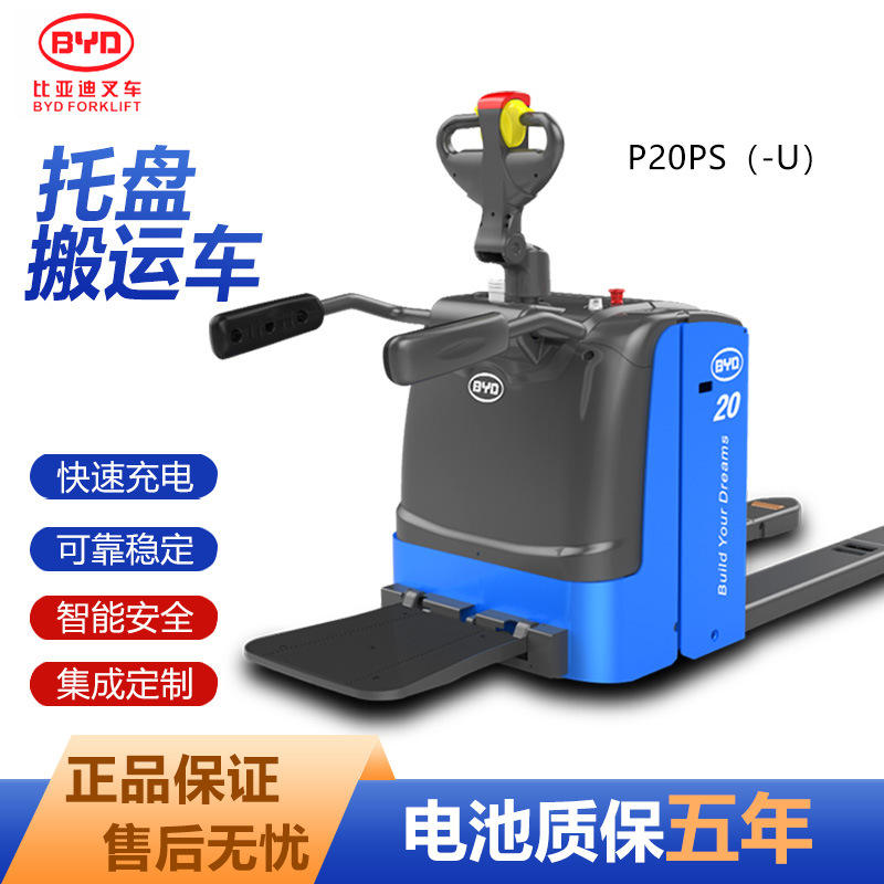 รถยกพาเลทไฟฟ้า Byd 2000 กก. แบบยืนขับ แบตเตอรี่ลิเธียม สำหรับการขนย้ายวัสดุ