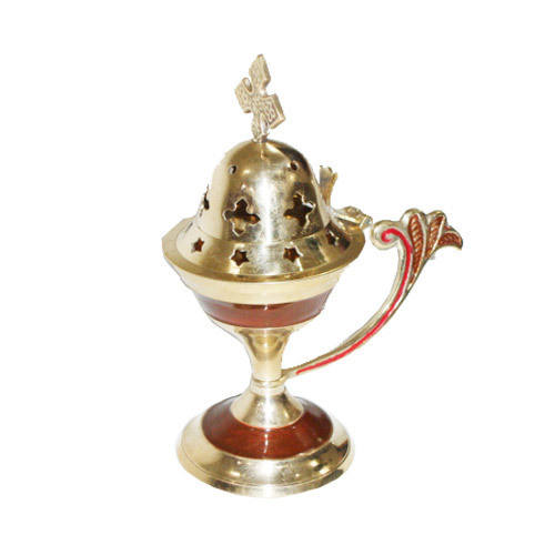 กระถางธูปทองเหลืองแบบไบแซนไทน์พร้อมที่ใส่ธูปงาช้าง