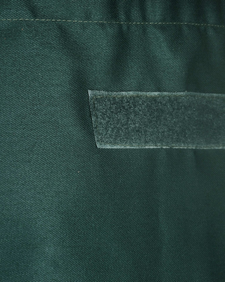 ซี.บี.เอฟ. ผ้ากันเปื้อนเชฟสีเขียวของกลุ่มบริษัทบัลดุคกี้ สำหรับร้านอาหารและบาร์ ผลิตจากผ้าทวิลโพลีเอสเตอร์ผสมฝ้าย เหมาะสำหรับทั้งชายและหญิง