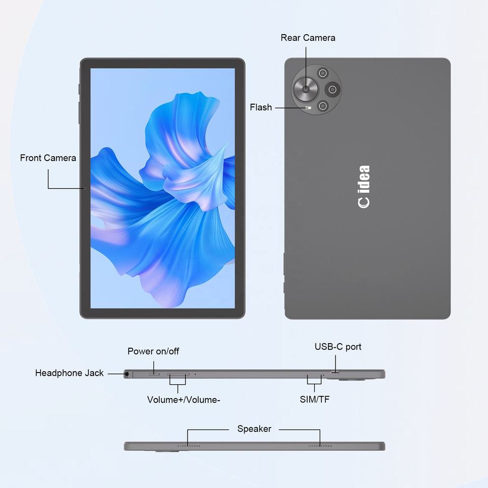 แท็บเล็ตพีซี C Idea ขนาด 10.36 นิ้ว หน้าจอแบบ Capacitive แบตเตอรี่ 5100mAh แรม 8GB+รอม 128GB ระบบปฏิบัติการ Android 14 รองรับ 5G ใส่ซิมได้ (สีเทา)-ขายส่ง