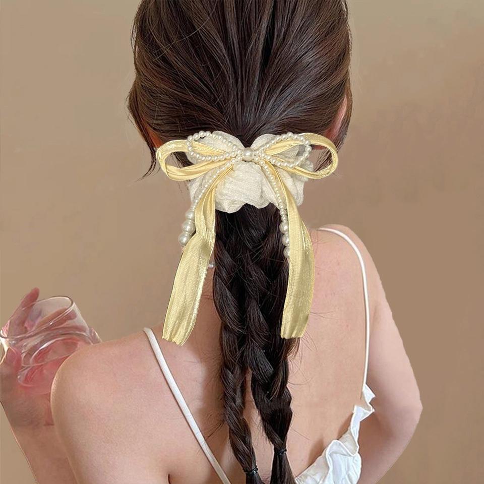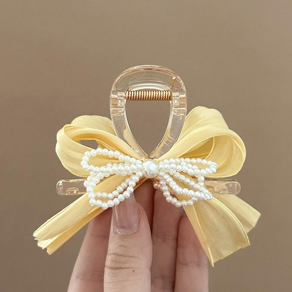 C & J Yanye สายรัดผมรูปโบว์ไข่มุกสีเหลืองสดและน่ารัก