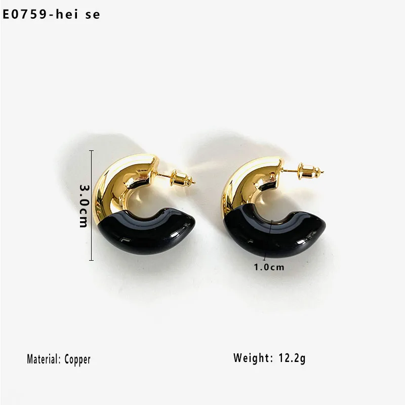 ต่างหูทรงหยดน้ำรูปตัว C ทำจากอะคริลิกและโลหะผสมสังกะสี ชุบทอง 14K สำหรับลุคแฟชั่นคลาสสิกและมีสไตล์