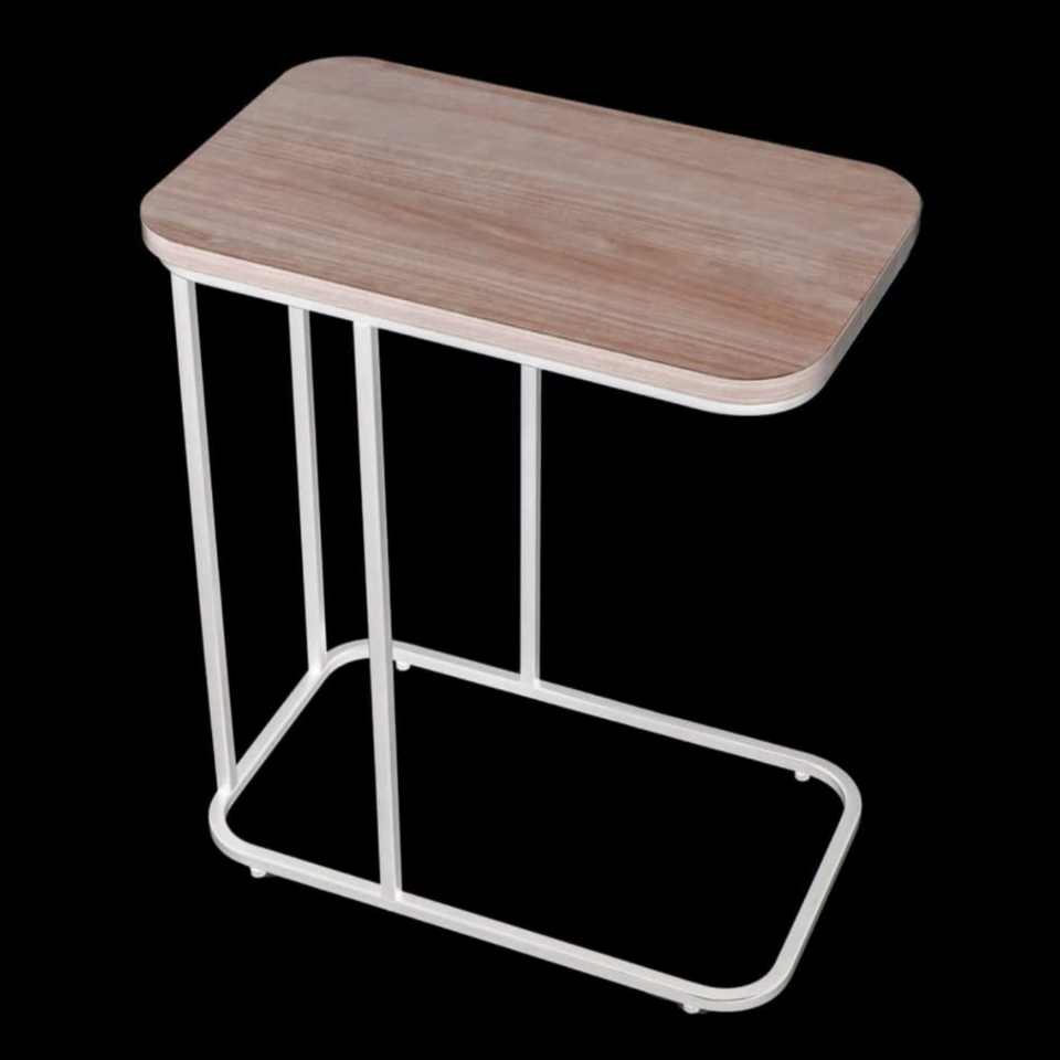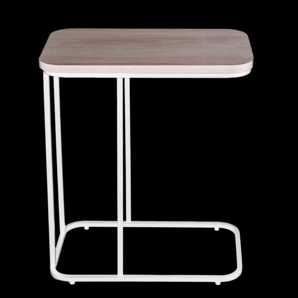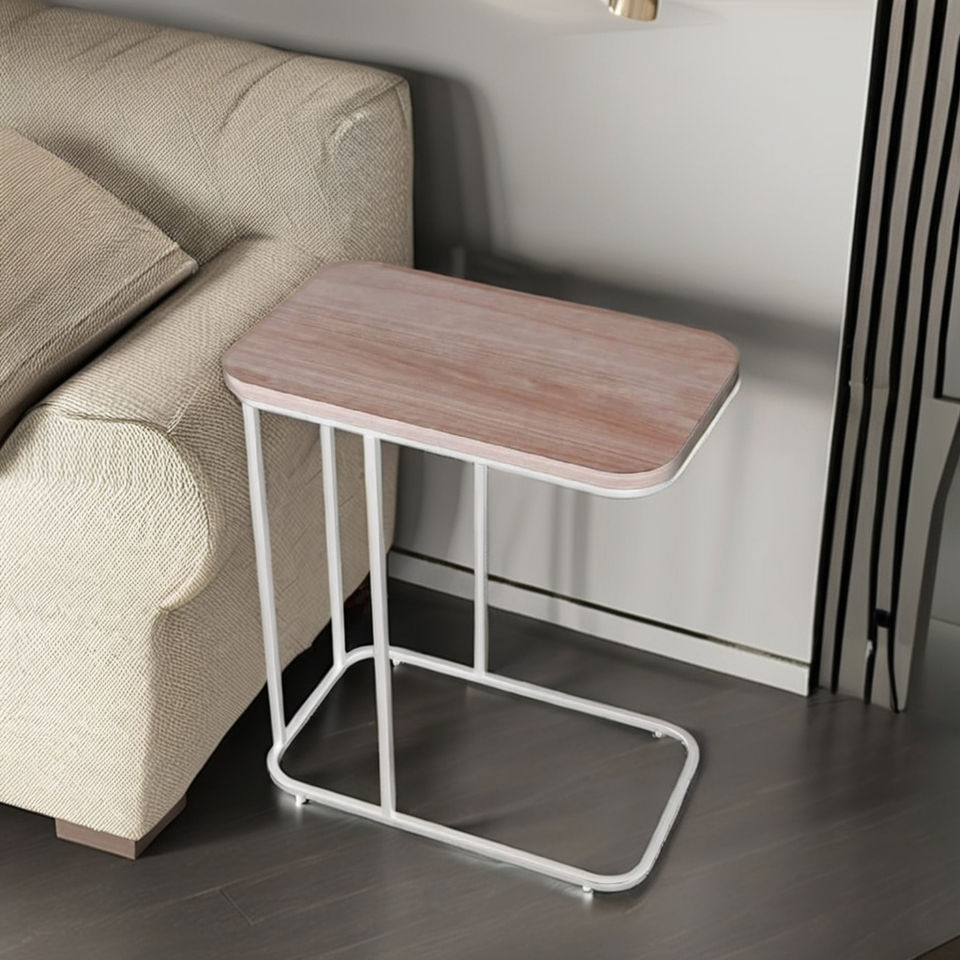 โต๊ะข้างเตียงรูปตัว C ดีไซน์เรียบง่ายทันสมัยโครงเหล็กด้านบนทำจากไม้สีขาว