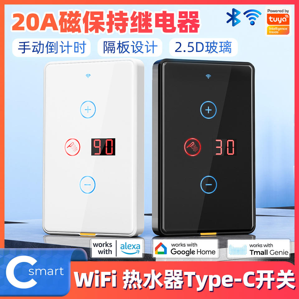 สวิตช์เครื่องทำน้ำอุ่นระบบสัมผัสพร้อมไวไฟซีรีย์อัจฉริยะตัวจับเวลาควบคุมแอป20A Tuya รีโมทคอนโทรลเสียง