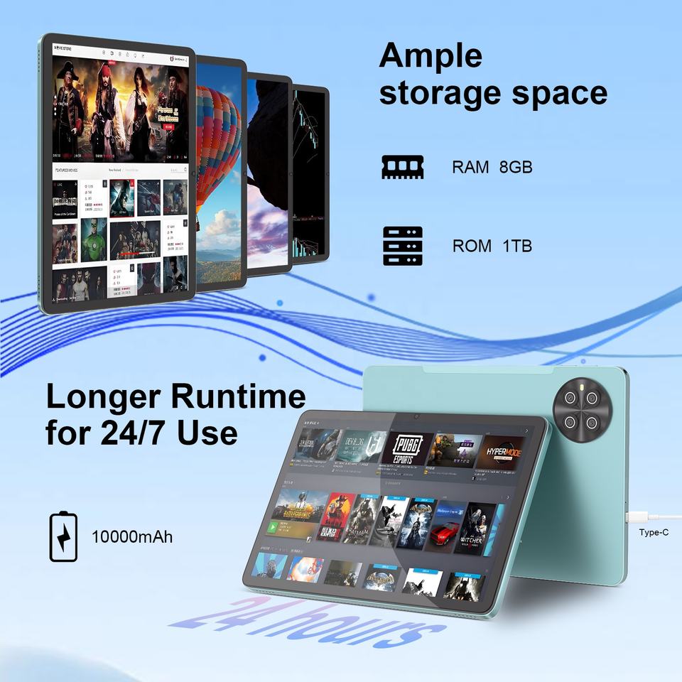 C idea Wholesale OEM 10 Inch Touch Screen 8 GB+1TGB 1280*800 WiFi Android 15 Manufacturer Tablet Pc for Adults Teens(Blue)