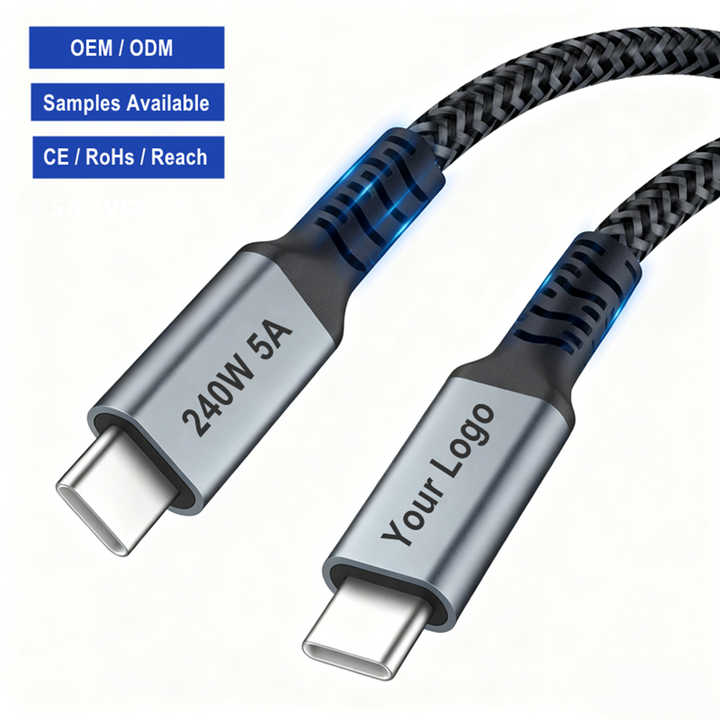 สายชาร์จเร็วแบบ C to C สายชาร์จ Type C 240W 5A PD 3.1 สายชาร์จข้อมูล 1 ม. 2 ม. 3 ม. คุณภาพสูง สายถักไนลอน สาย USB Type-C แบบกำหนดเอง