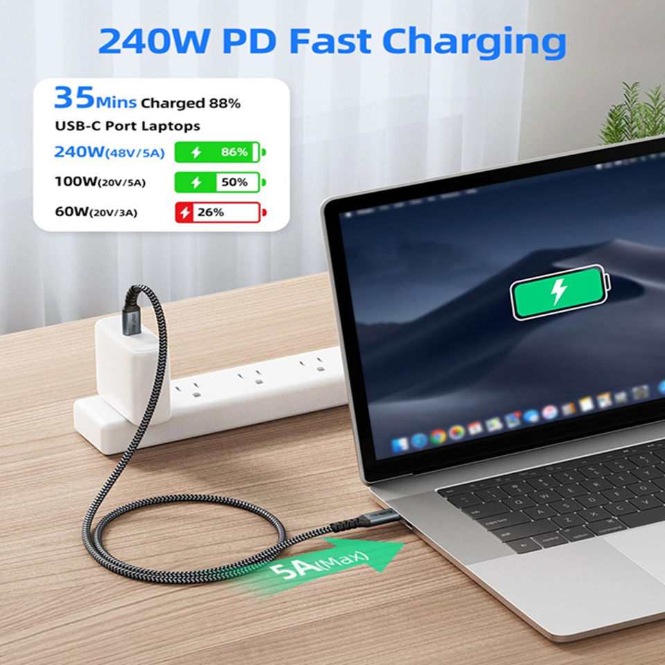 5A Fast CHARGING, ถ่ายโอนข้อมูล 480Mbps, การจ่ายไฟที่รวดเร็ว 240W