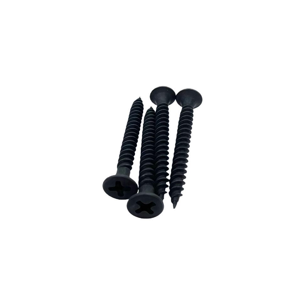 สกรูยึดผนังยิปซัมคุณภาพสูง รุ่น Homn Reen C1022 วัสดุเหล็ก ชุบฟอสเฟตสีดำ หัวแตร เกลียวละเอียด M3.5 ยาว 50 มม. รุ่น V50941