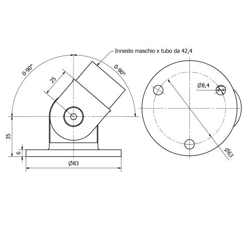 แผ่นสแตนเลสซาติน C110211 AISI 316 พร้อมข้อต่อ Ø 42.4 X 2.0 นิ้ว สำหรับราวบันไดและราวจับ