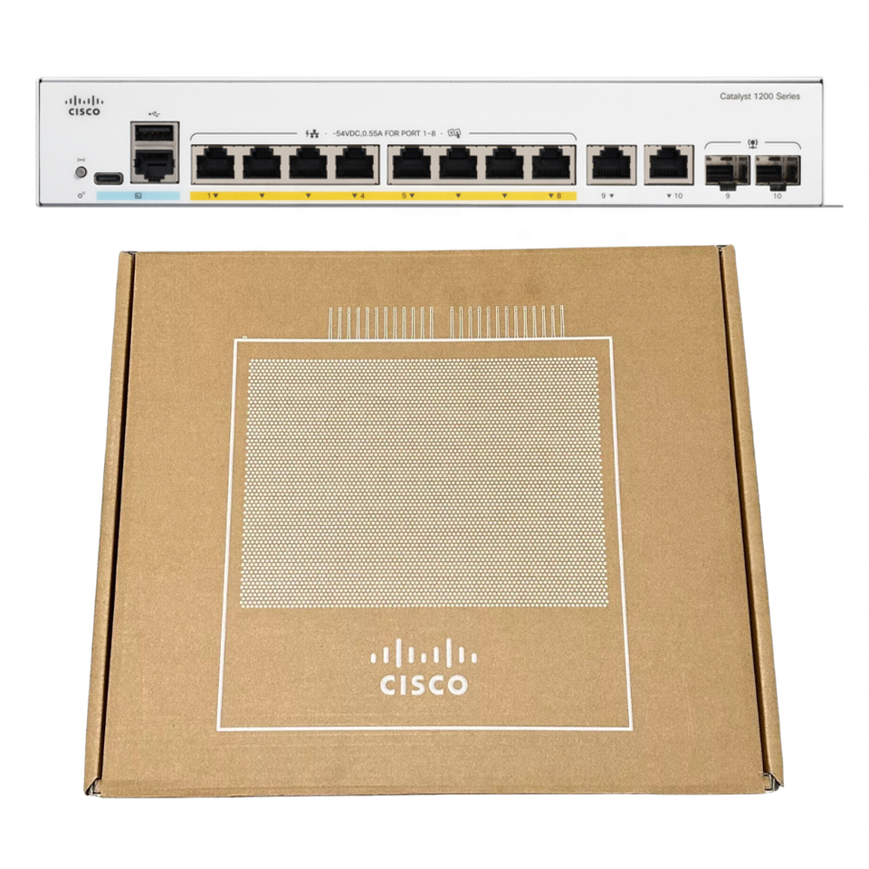 C1200-8FP-2G สวิตช์ POE กิกะบิต 8 พอร์ต ของแท้ 100% พร้อมกล่อง รุ่น C1200 8FP 2G สำหรับการเชื่อมต่อเครือข่ายเชิงพาณิชย์