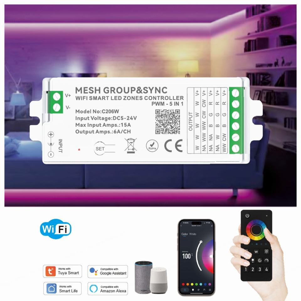 Application:4 Zone MESH Group&Sync Lighting Controller