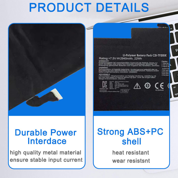 C21-TF201X แบตเตอรี่แล็ปท็อปที่เข้ากันได้กับ Asus Transformer Pad TF300T TF300TG TF300TL SERIES 7.5V 22Wh 2940mAh