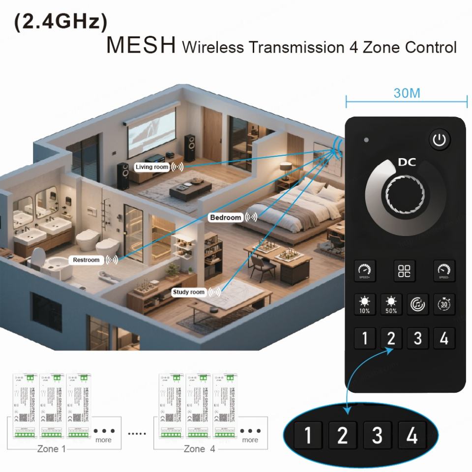 Application:4 Zone MESH Group&Sync Lighting Controller