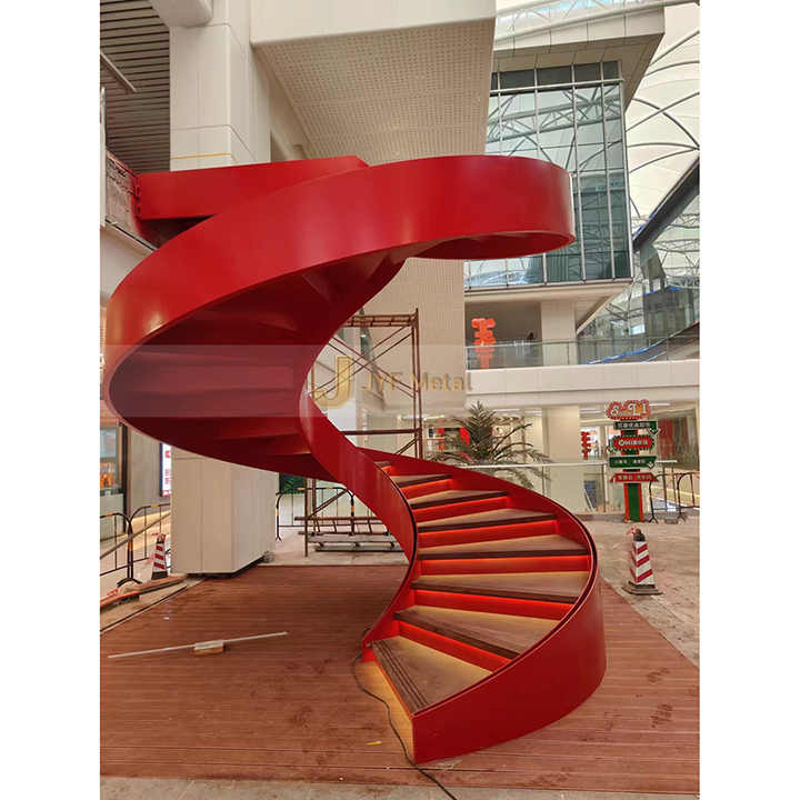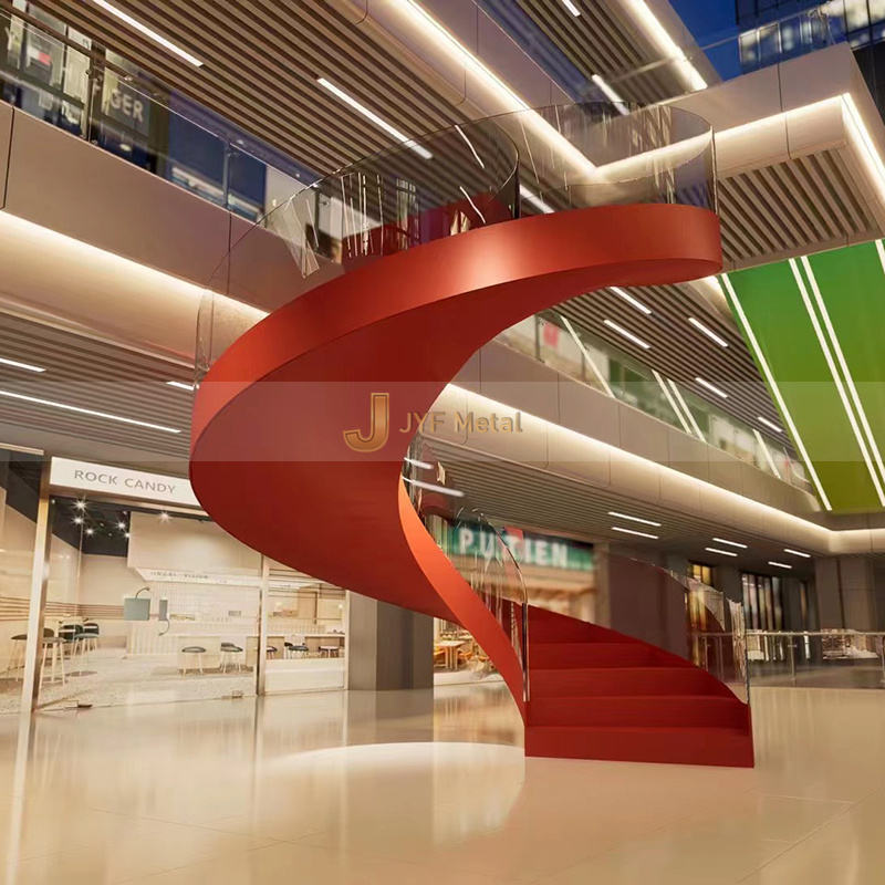 บันไดสแตนเลสโค้งดีไซน์ทันสมัยแบบกำหนดเอง C24 พร้อมราวบันไดกระจก รับประกัน 5 ปี สำหรับใช้ภายในโรงแรม